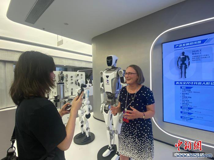 汉学家们参不雅东说念主形机器东说念主麒麟张望场。 单维利 摄